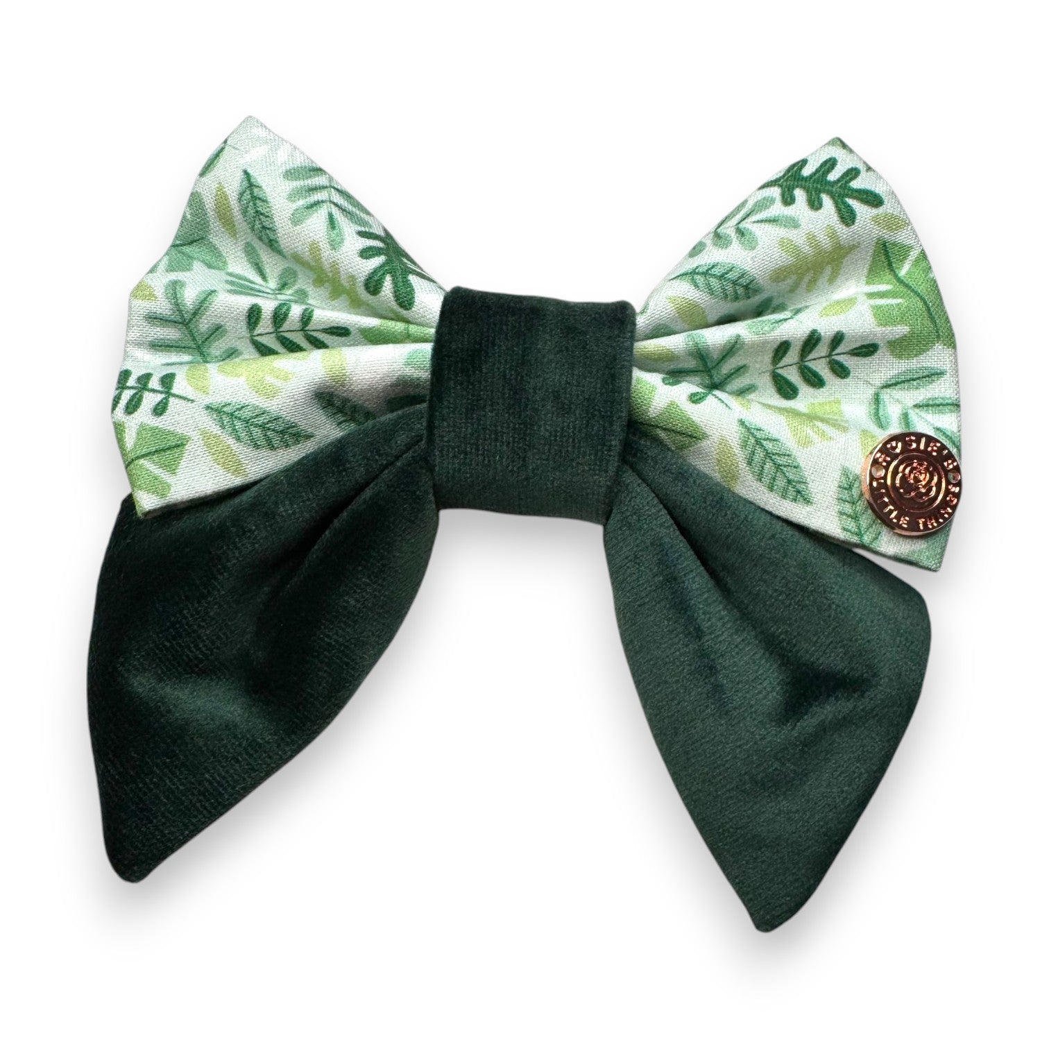 This elegant bow features luxurious forest green velvet, perfectly complementing the "You're Unbeleafable" collection.